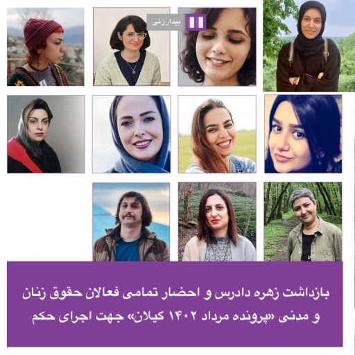 بازداشت زهره دادرس و احضار تمامی فعالان حقوق زنان و مدنی «پرونده مرداد ۱۴۰۲ گیلان» جهت اجرای حکم
