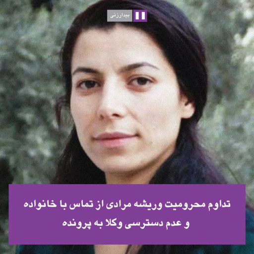 به گزارش شبکه حقوق بشر کردستان: «#وریشه_مرادی، زندانی سیاسی در زندان اوین همچنان از ۱۷ اردیبهشت سال جاری با دستور قاضی ابوالقاسم صلواتی از حق تماس و ملاقات با خانواده و وکلایش محروم است.دو هفته گذشته نیز در آستانه برگزاری دومین جلسه دادگاه این فعال زن کُرد، پس از مراجعه وکلای وی به شعبه ۱۵ دادگاه انقلاب اسلامی تهران برای مطالعه پرونده، به آنها اعلام شده که حق دسترسی به پرونده و حتی مراحعه مجدد به دادگاه را ندارند.